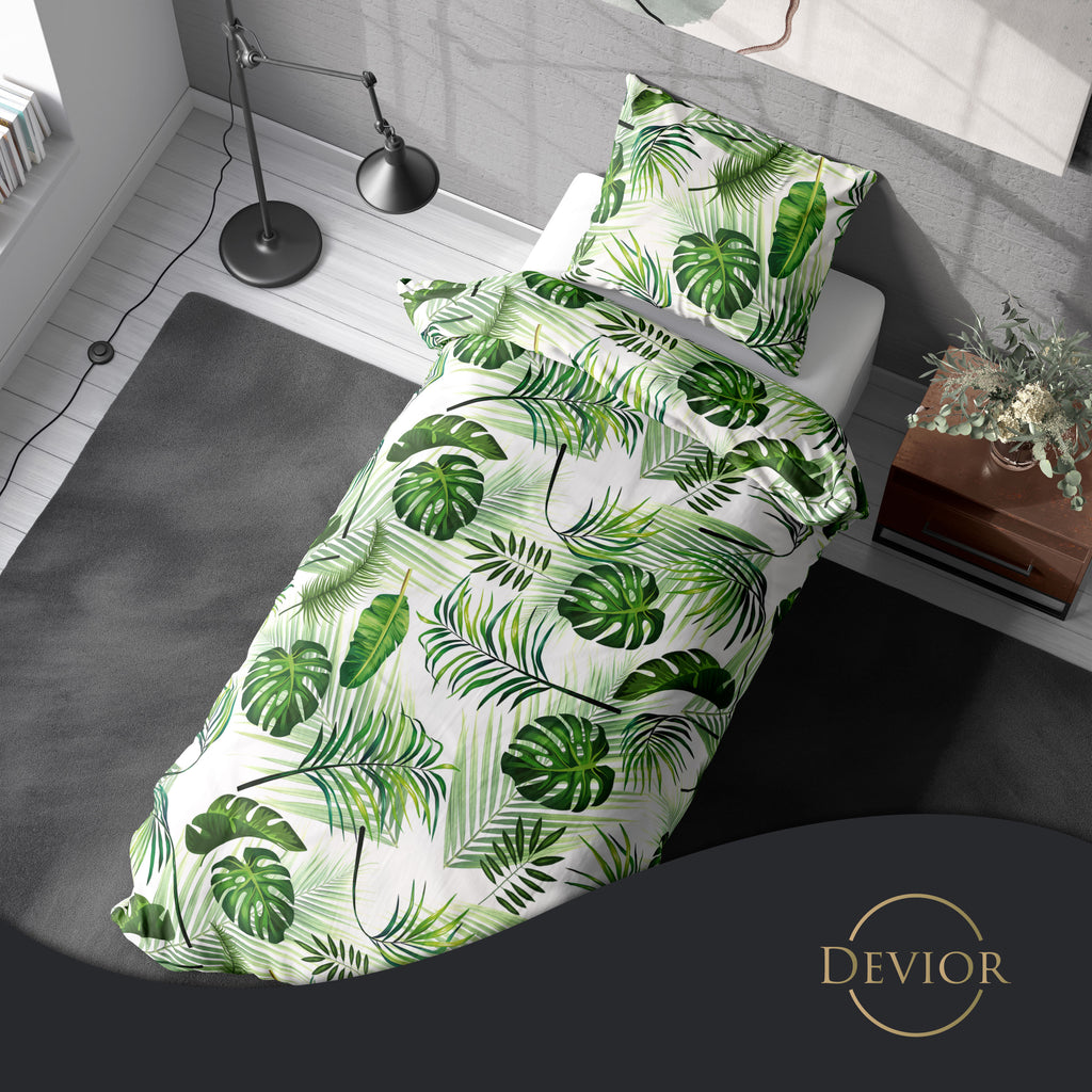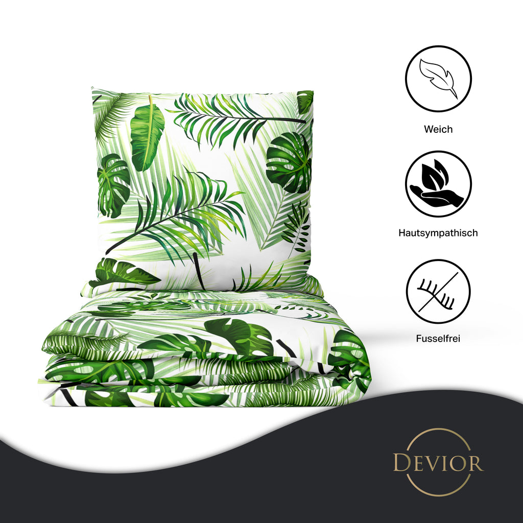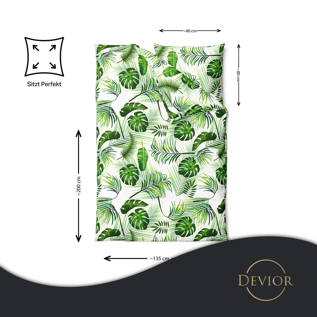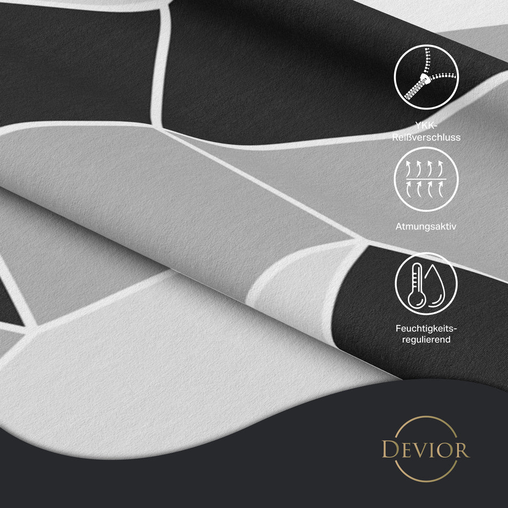 Das Devior Set zeichnet sich durch einen verdeckten, qualitativ hochwertigen YKK-Reißverschluss aus, der Komfort mit Strapazierfähigkeit verbindet. Hautsympathisch und feuchtigkeitsregulierend, unterstützt es einen ungestörten Schlaf, während die atmungsaktive Qualität für eine ausgeglichene Temperatur sorgt.