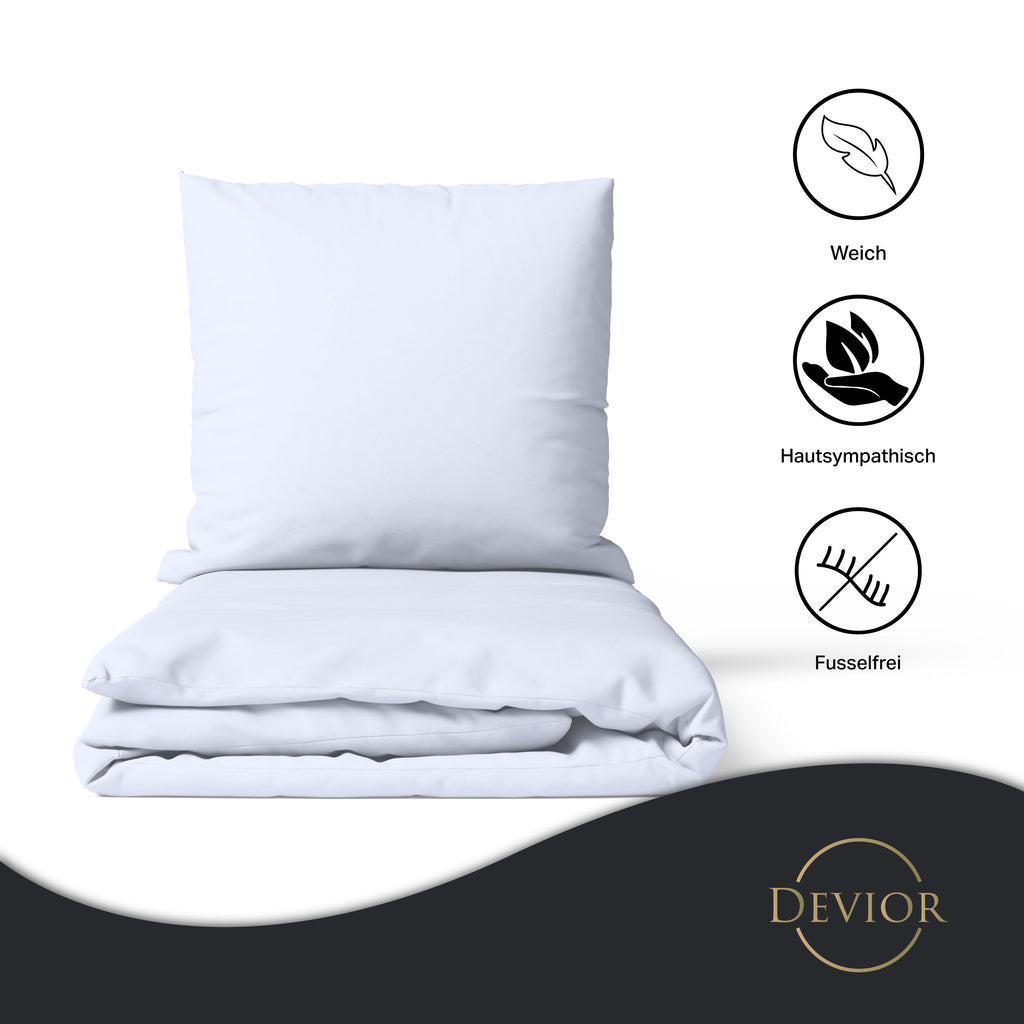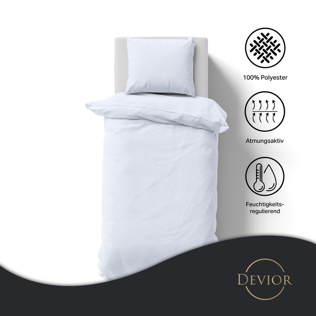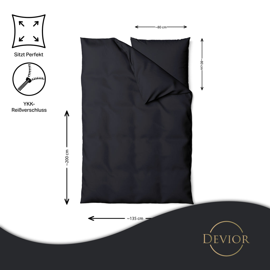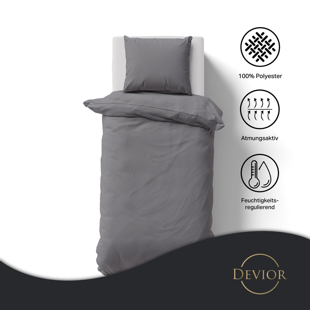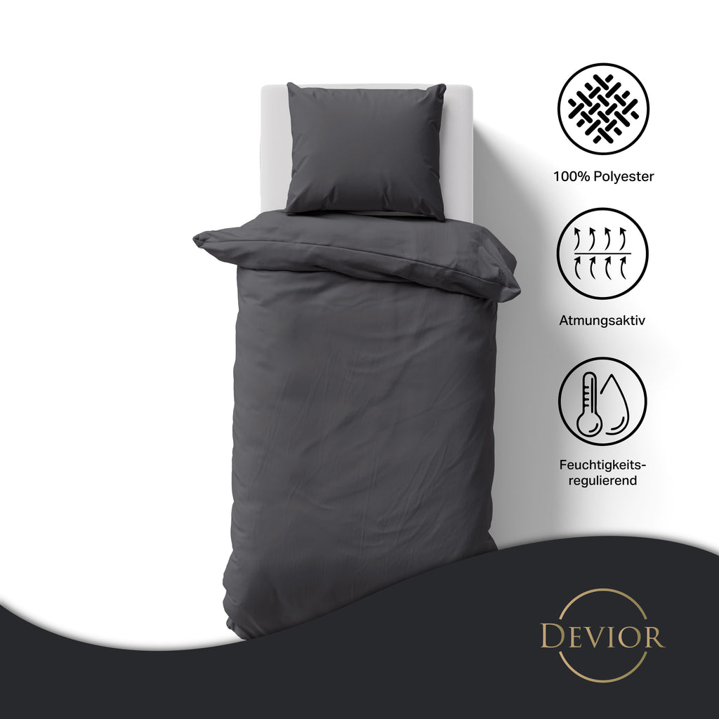 Das Devior Set zeichnet sich durch einen verdeckten, qualitativ hochwertigen YKK-Reißverschluss aus, der Komfort mit Strapazierfähigkeit verbindet. Hautsympathisch und feuchtigkeitsregulierend, unterstützt es einen ungestörten Schlaf, während die atmungsaktive Qualität für eine ausgeglichene Temperatur sorgt.