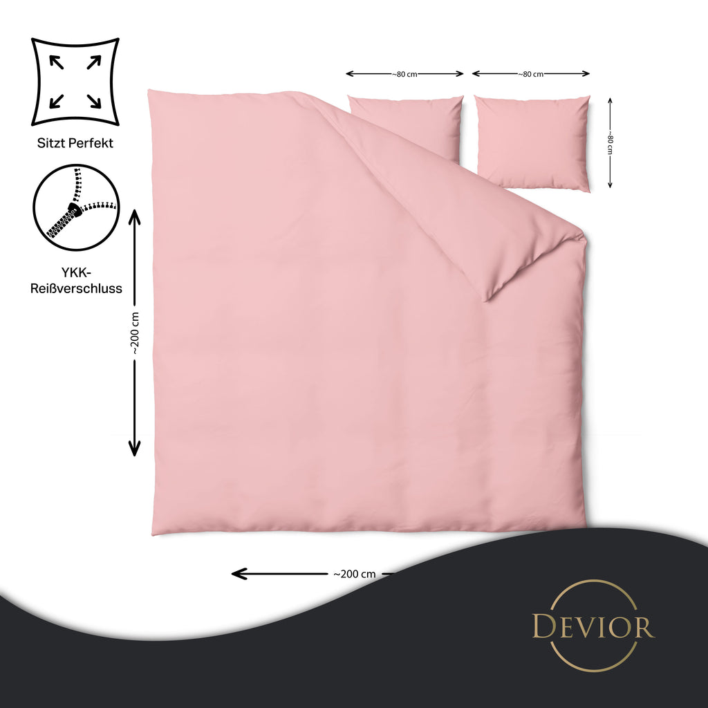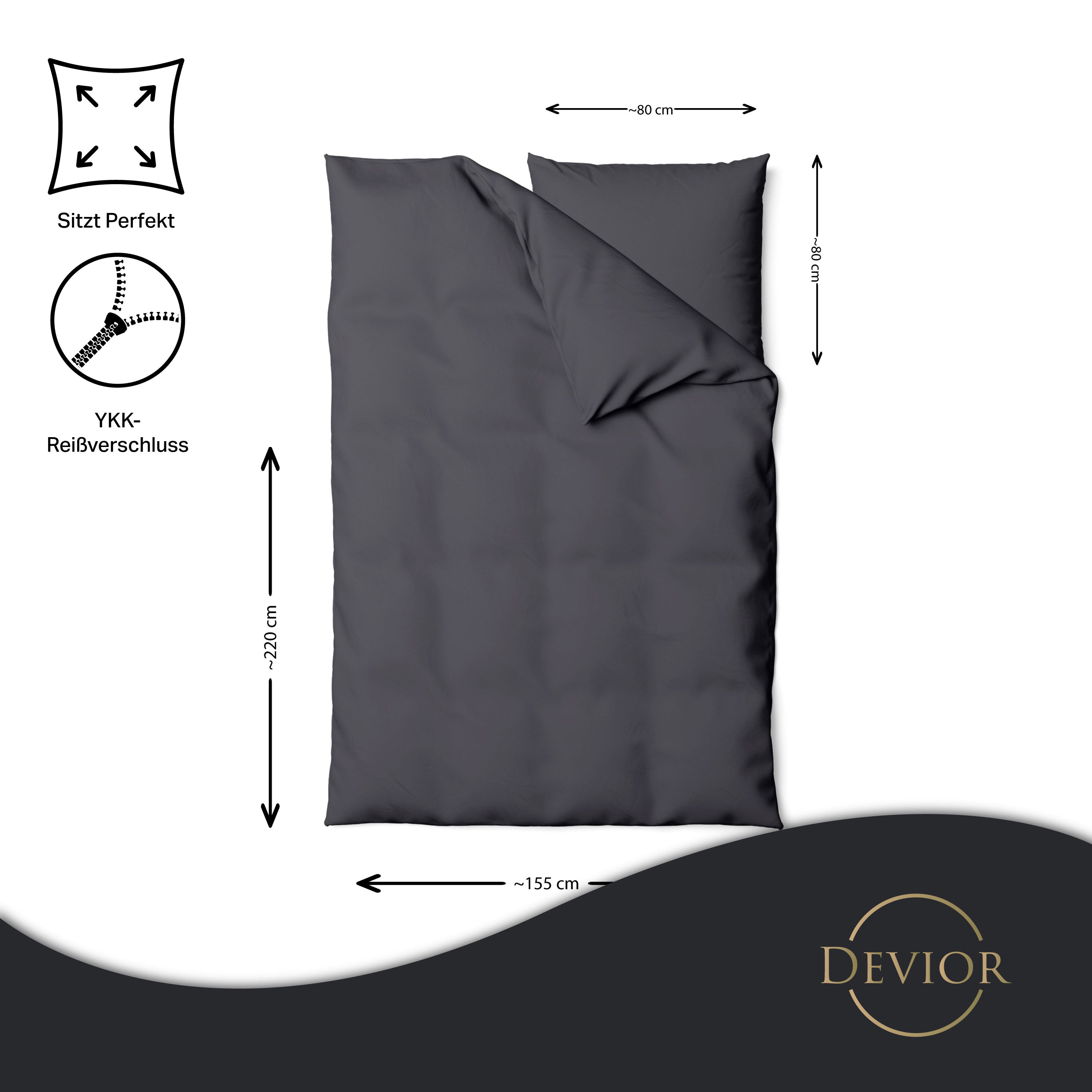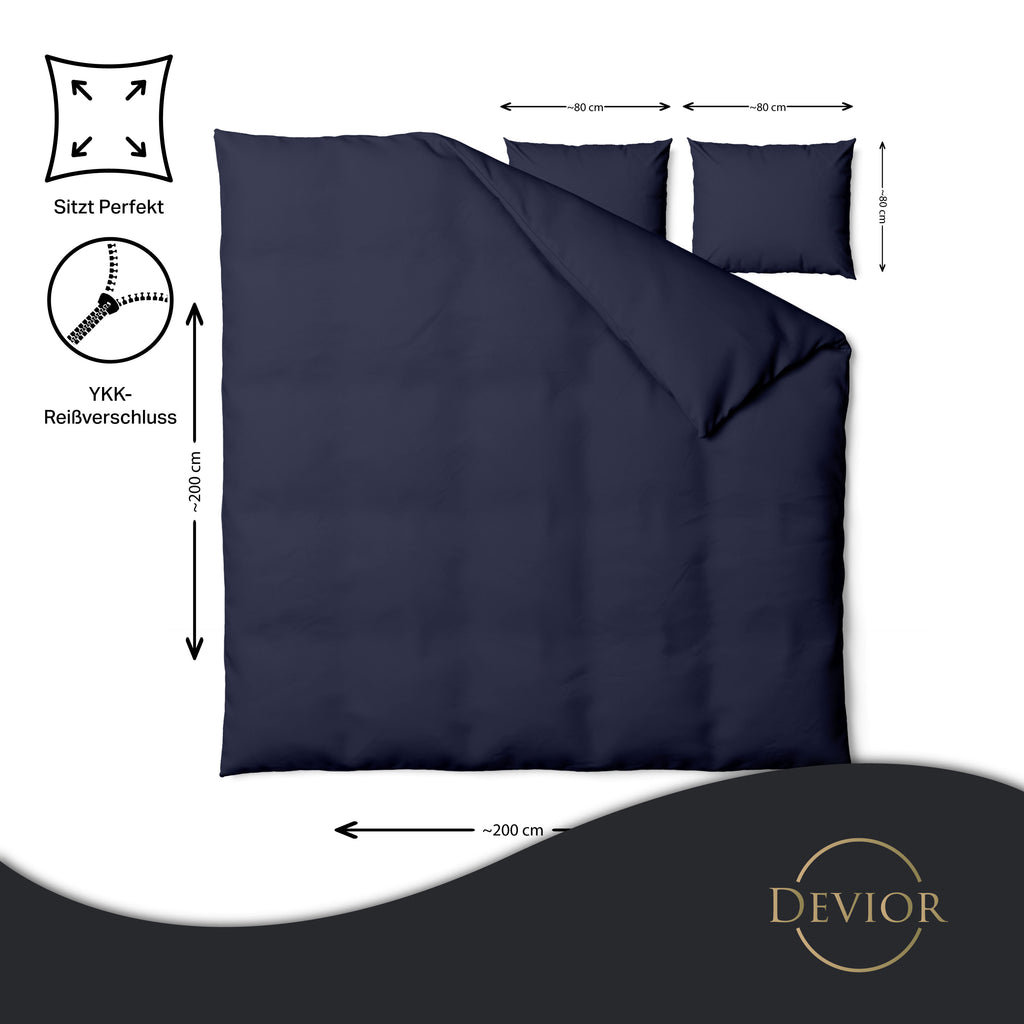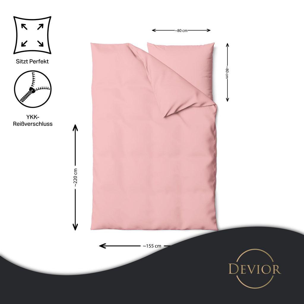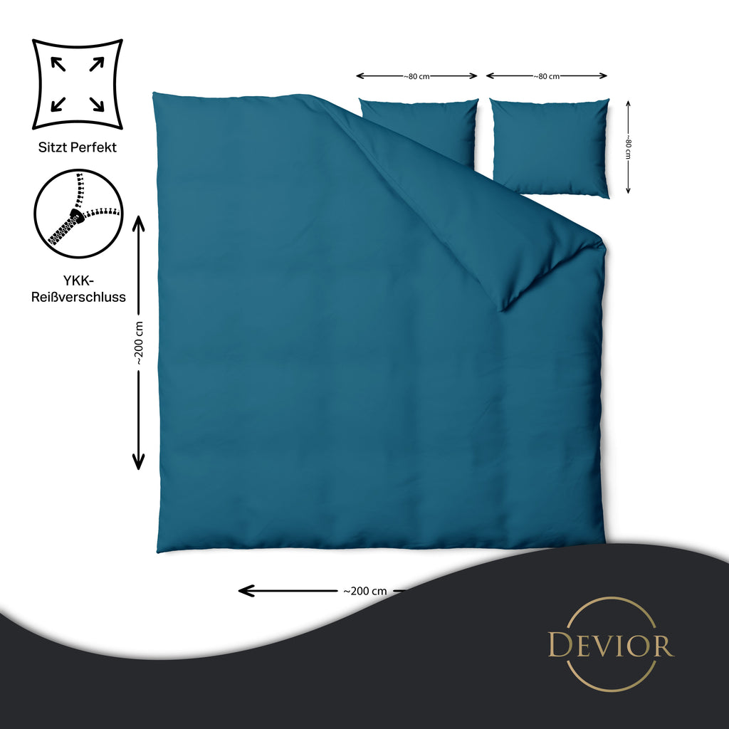 Das Devior Set zeichnet sich durch einen verdeckten, qualitativ hochwertigen YKK-Reißverschluss aus, der Komfort mit Strapazierfähigkeit verbindet. Hautsympathisch und feuchtigkeitsregulierend, unterstützt es einen ungestörten Schlaf, während die atmungsaktive Qualität für eine ausgeglichene Temperatur sorgt.