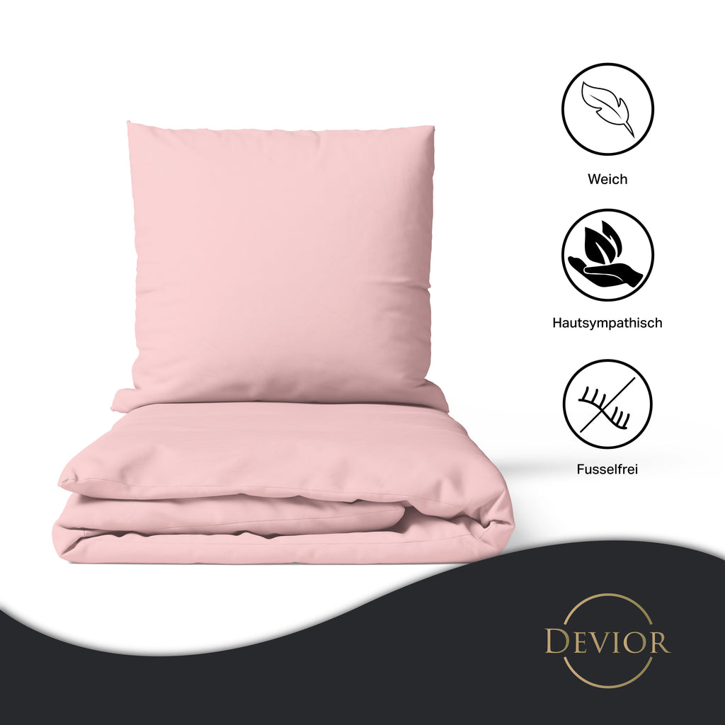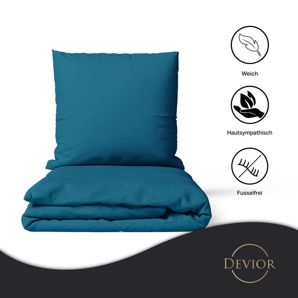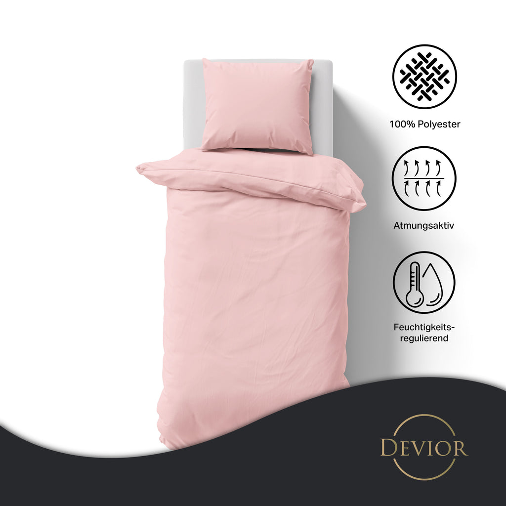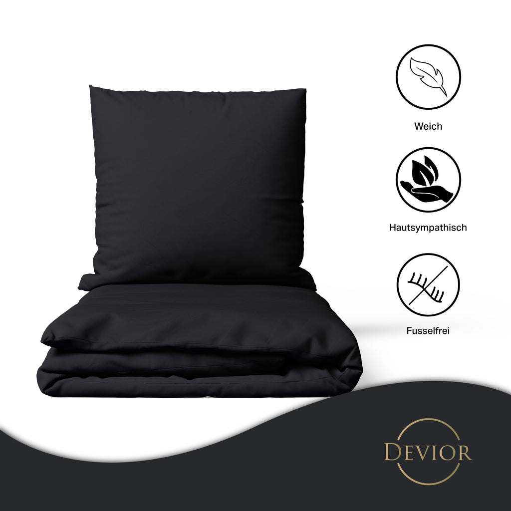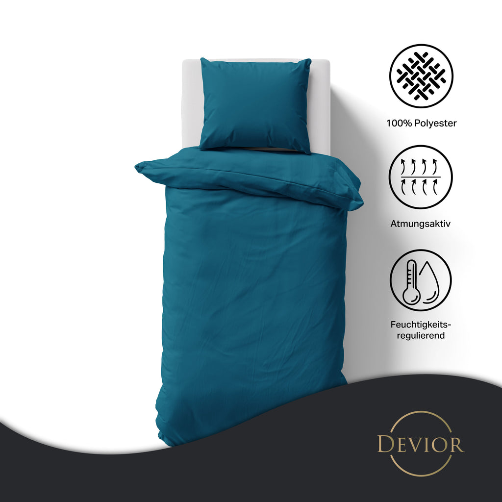 Das Devior Set zeichnet sich durch einen verdeckten, qualitativ hochwertigen YKK-Reißverschluss aus, der Komfort mit Strapazierfähigkeit verbindet. Hautsympathisch und feuchtigkeitsregulierend, unterstützt es einen ungestörten Schlaf, während die atmungsaktive Qualität für eine ausgeglichene Temperatur sorgt.