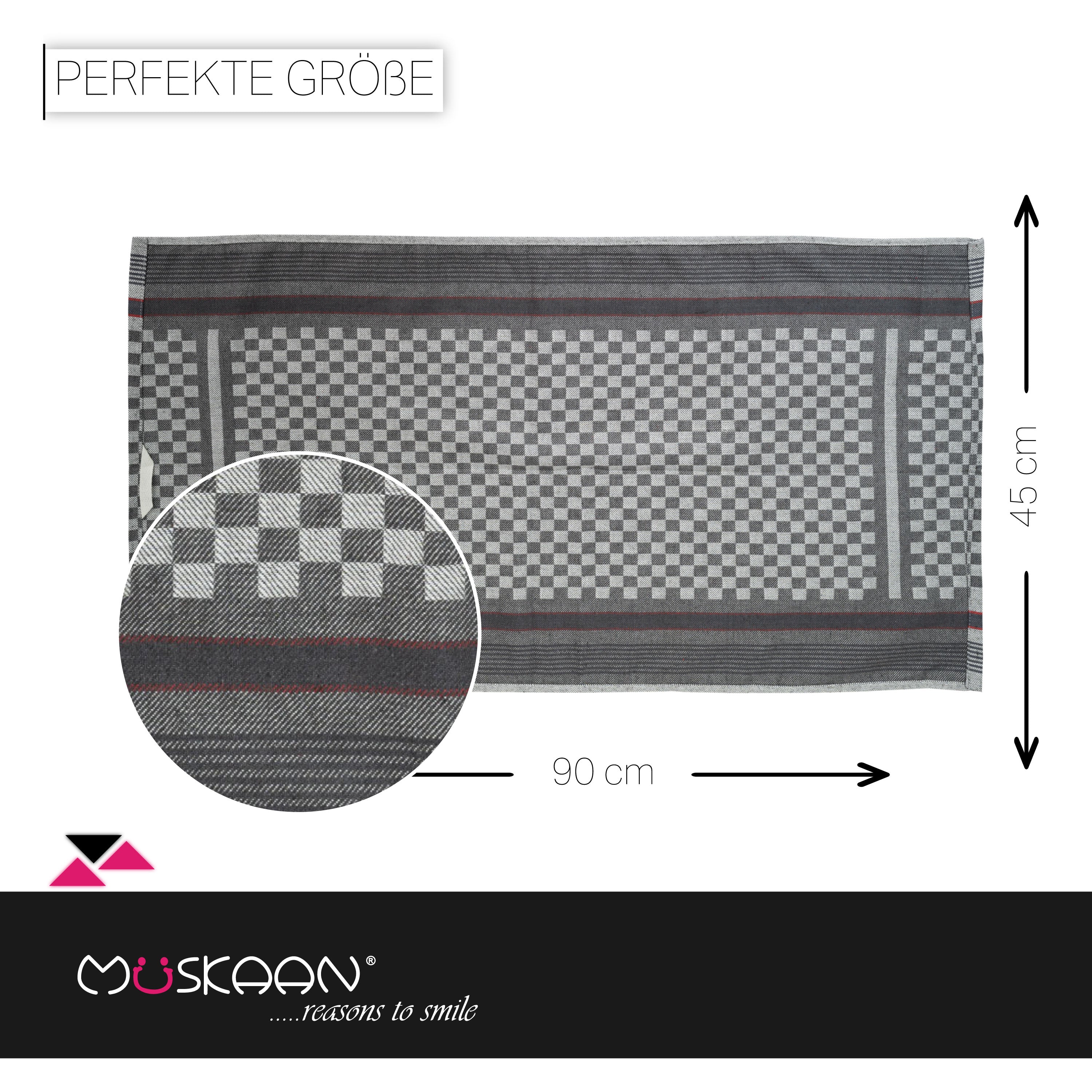 Mit einer Abmessungen von 45x90 cm und einem Gewicht von 105g pro Stück bieten diese Tücher die perfekte Größe und Dicke für all Ihre Bedürfnisse. Aus 100% Baumwolle gefertigt, sind sie nicht nur hautsympathisch und fließend weich, sondern auch extrem saugfähig. Sie absorbieren Feuchtigkeit und Wasser und garantieren eine streifenfreie Reinigung. Egal ob Sie ein Glas polieren, verschüttete Flüssigkeiten aufwischen oder einfach nur das Geschirr abtrocknen möchten – mit unseren Tüchern meistern Sie jede Herausforderung mit Leichtigkeit. Und wenn es um das Waschen geht? Einfach und praktisch! Unsere Tücher sind bis zu 95°C waschbar und trocknergeeignet.