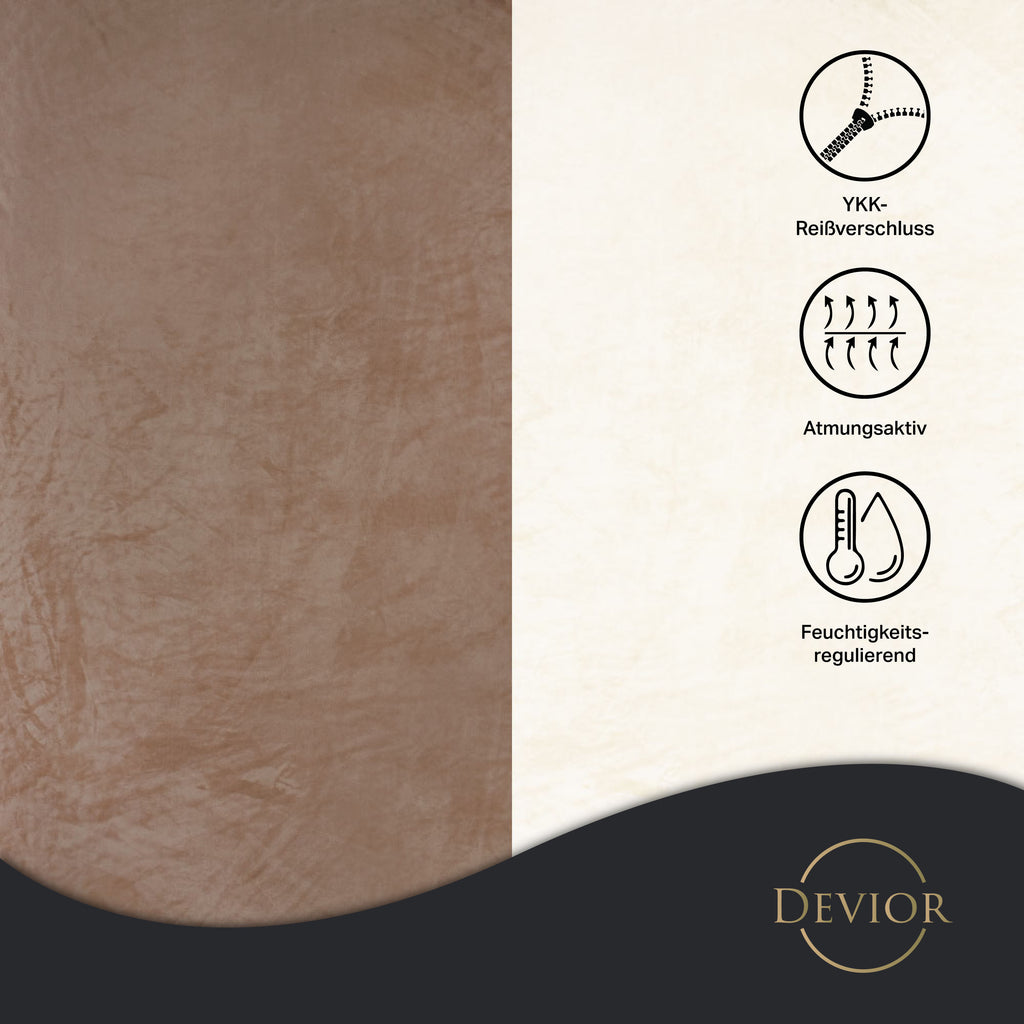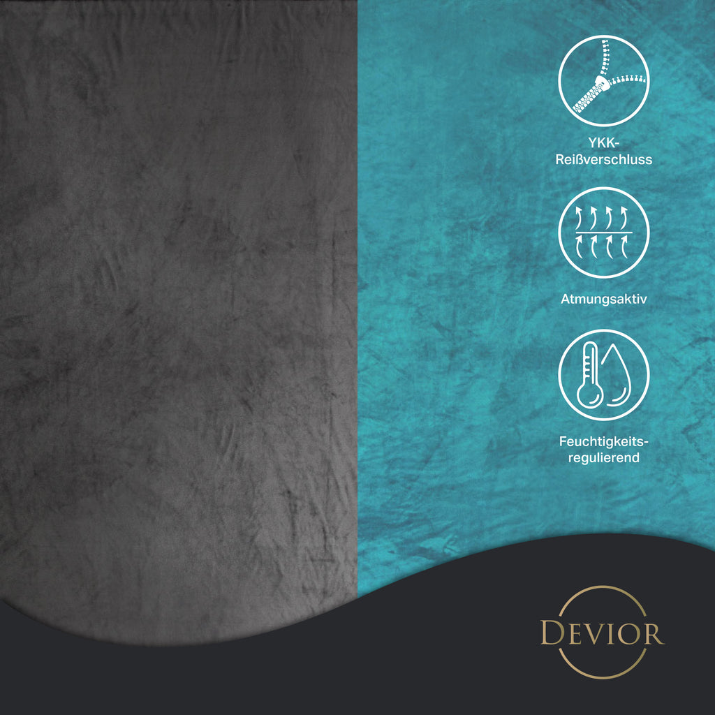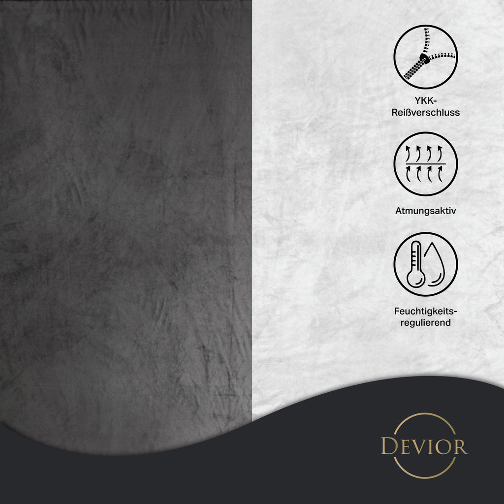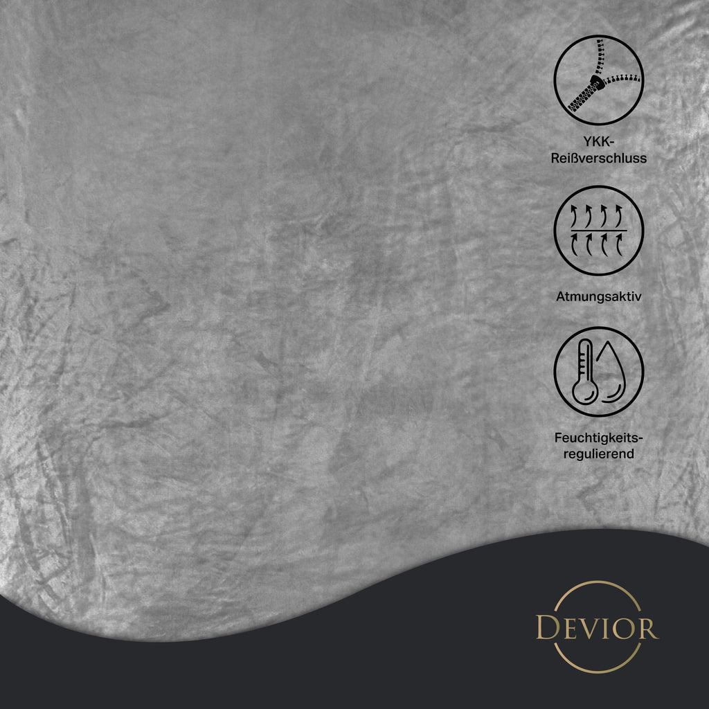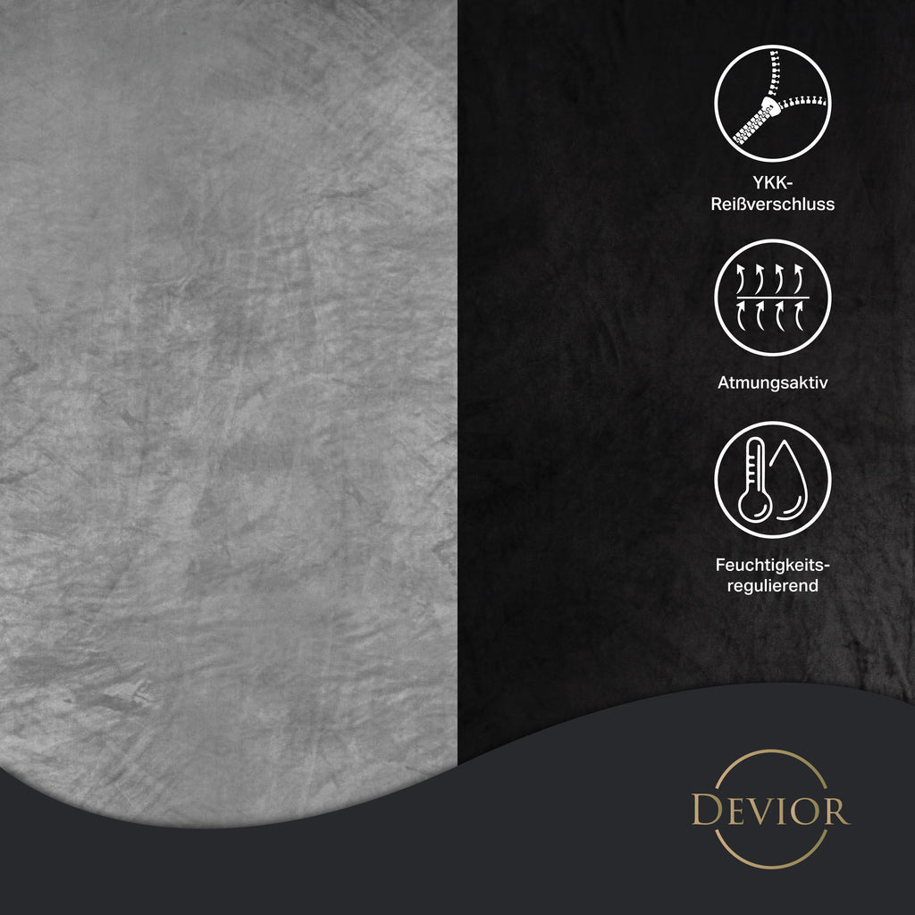 Das Devior Set zeichnet sich durch einen verdeckten, qualitativ hochwertigen YKK-Reißverschluss aus, der Komfort mit Strapazierfähigkeit verbindet. Hautsympathisch und feuchtigkeitsregulierend, unterstützt es einen ungestörten Schlaf, während die atmungsaktive Qualität für eine ausgeglichene Temperatur sorgt.