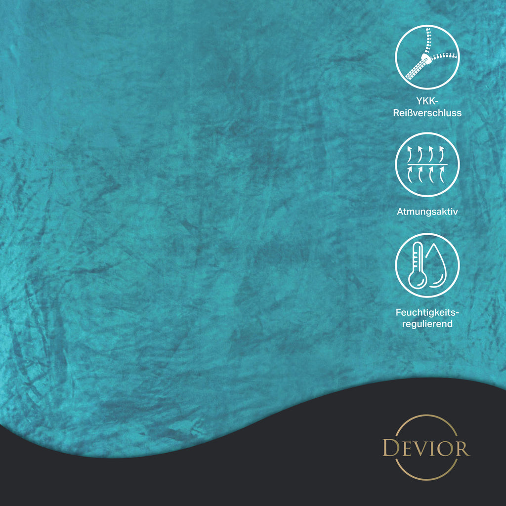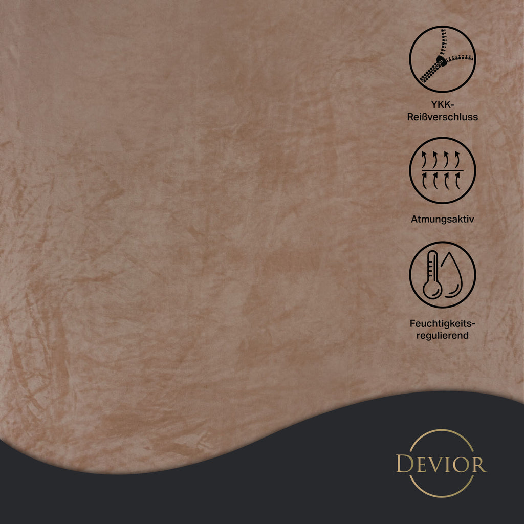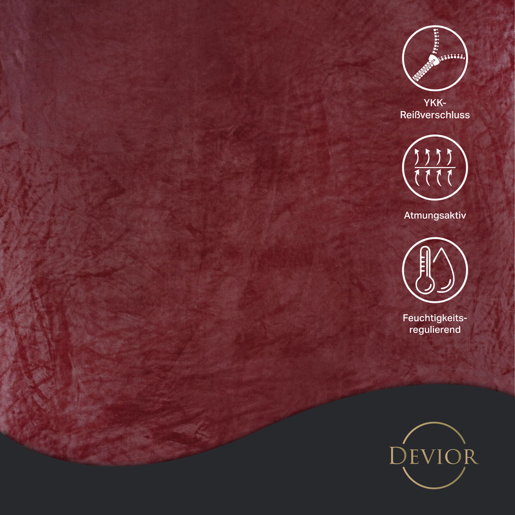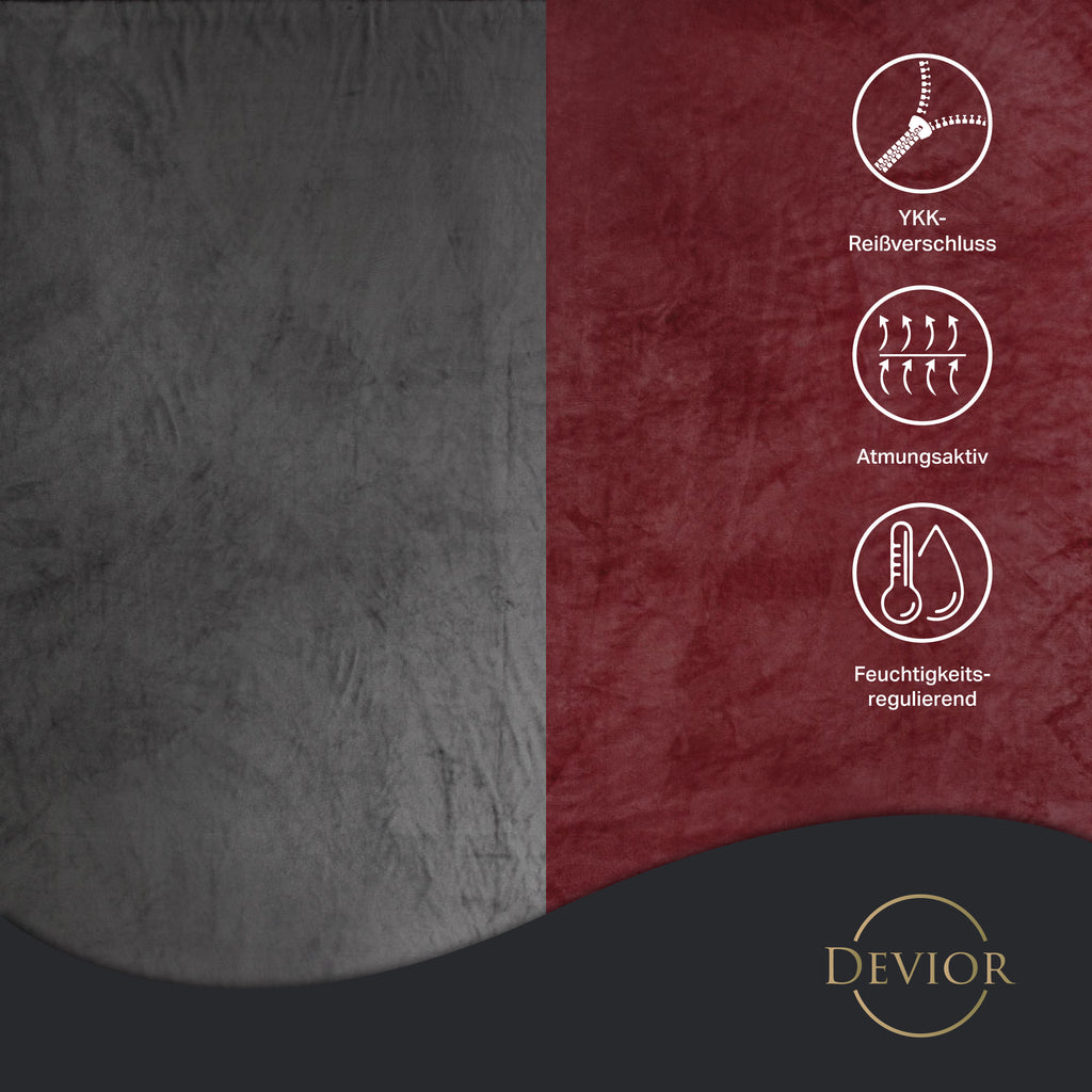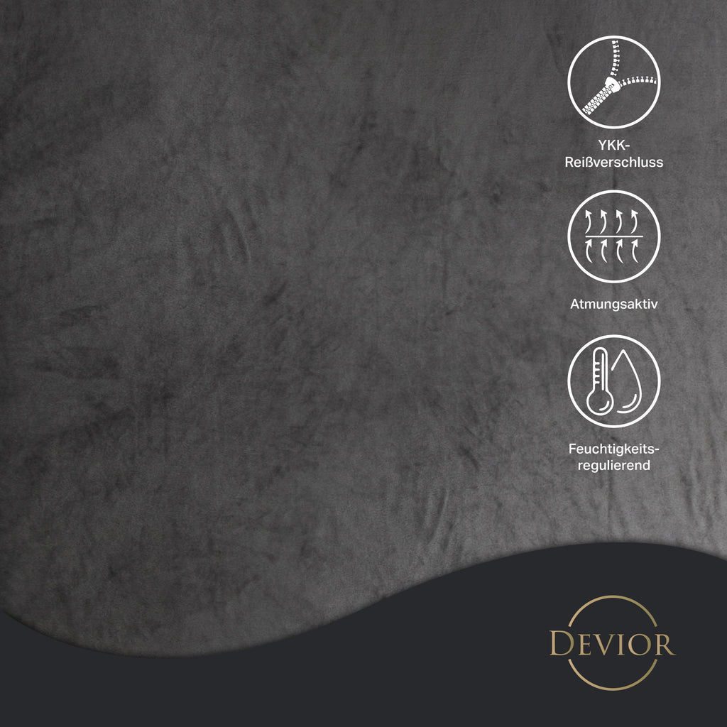 Das Devior Set zeichnet sich durch einen verdeckten, qualitativ hochwertigen YKK-Reißverschluss aus, der Komfort mit Strapazierfähigkeit verbindet. Hautsympathisch und feuchtigkeitsregulierend, unterstützt es einen ungestörten Schlaf, während die atmungsaktive Qualität für eine ausgeglichene Temperatur sorgt.